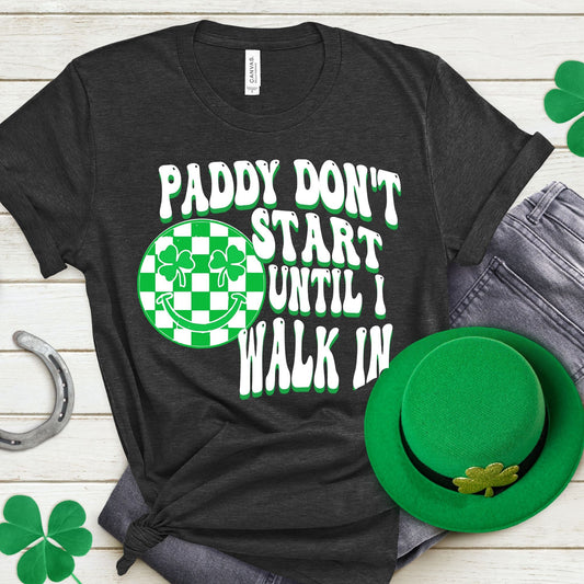 Happy Saint Patricks Day Paddy Shirt, St Patty's Day Tshirt, Saint Patty's Unisex Crewneck Tee, Plus Size, Retro Groovy Smiley Checkered Tee